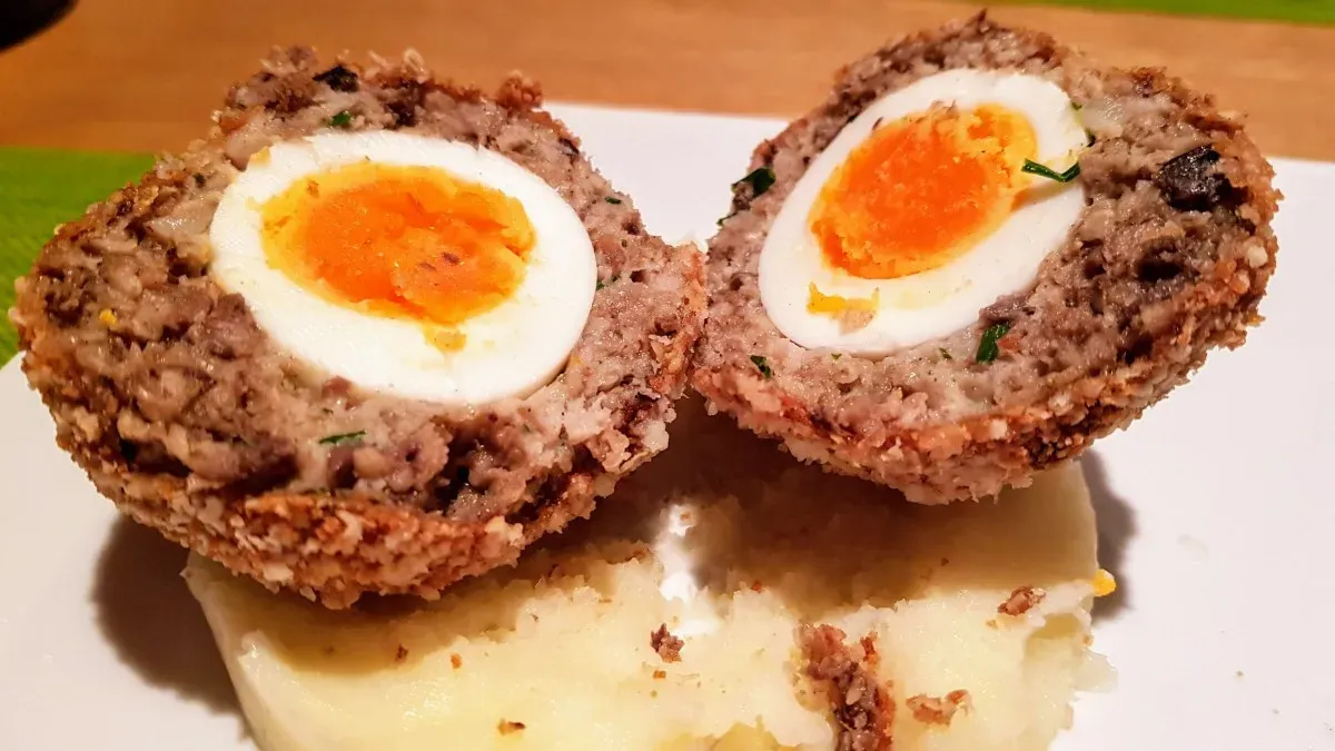 Tuyệt vời hơn cả, lớp nhân Haggis đó bao bọc lấy một quả trứng luộc lòng đào (soft-boiled egg). Khi bạn dùng dao cắt đôi, lớp lòng đỏ trứng sẽ từ từ chảy ra, hòa quyện với phần nhân Haggis đậm đà, tạo nên sự cân bằng hương vị tuyệt đối. Vị béo ngậy của trứng, vị đậm đà của thịt, cùng sự giòn tan của lớp vỏ ngoài khiến món Haggis Scotch Eggs trở thành một bữa ăn nhẹ hoàn hảo, một minh chứng cho sự tinh tế trong ẩm thực Pub hiện đại.