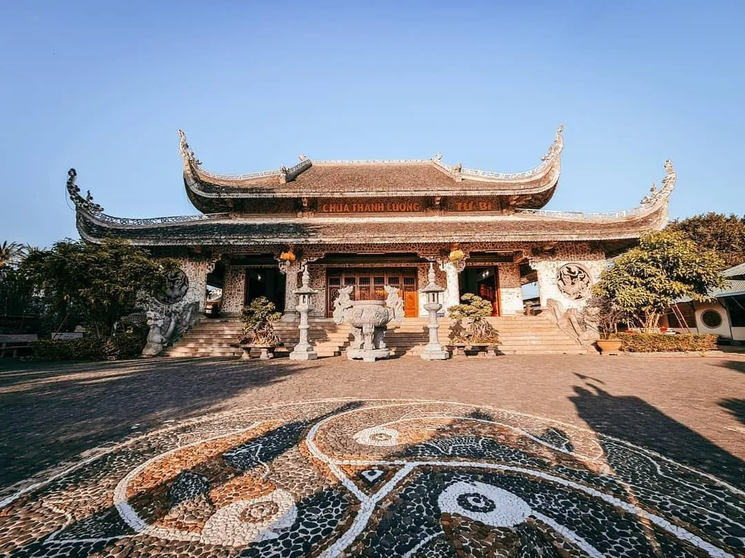 Chùa Thanh Lương là một điểm đến tâm linh độc đáo và vô cùng khác biệt so với những ngôi chùa thông thường. Điều làm nên sự đặc biệt của chùa chính là chất liệu xây dựng từ những khối san hô khô và gáo dừa, những vật liệu đặc trưng của vùng biển xứ Nẫu. Kiến trúc của chùa mang vẻ đẹp mộc mạc, tự nhiên với gam màu trầm ấm của thời gian.
